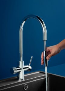En este contexto, Aquafy de Roca surge como una solución innovadora que redefine el uso del agua en la cocina. Se trata de un sistema de filtración integrado en la grifería que permite disfrutar de agua pura, directamente del grifo, con un diseño elegante y tecnología avanzada.